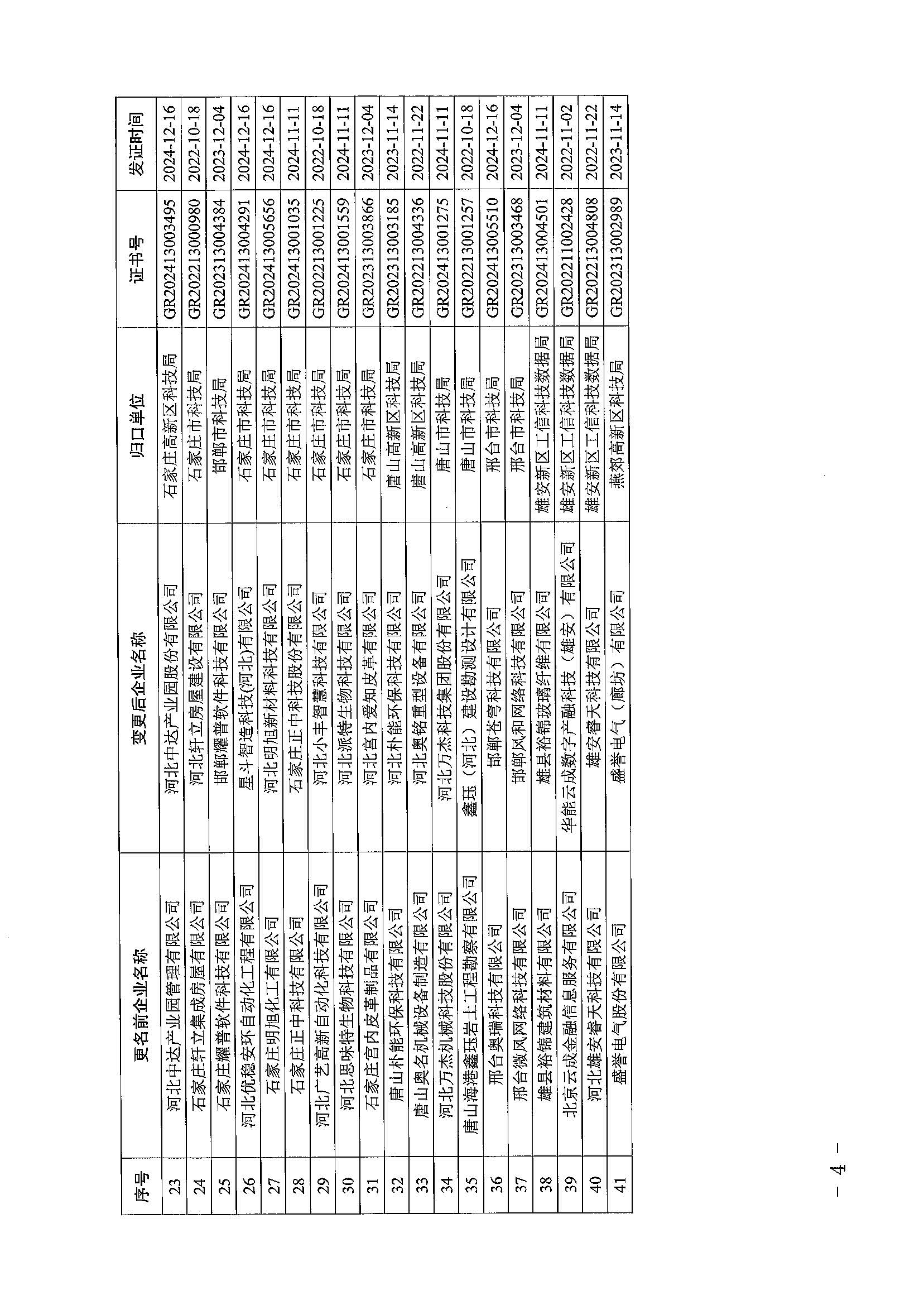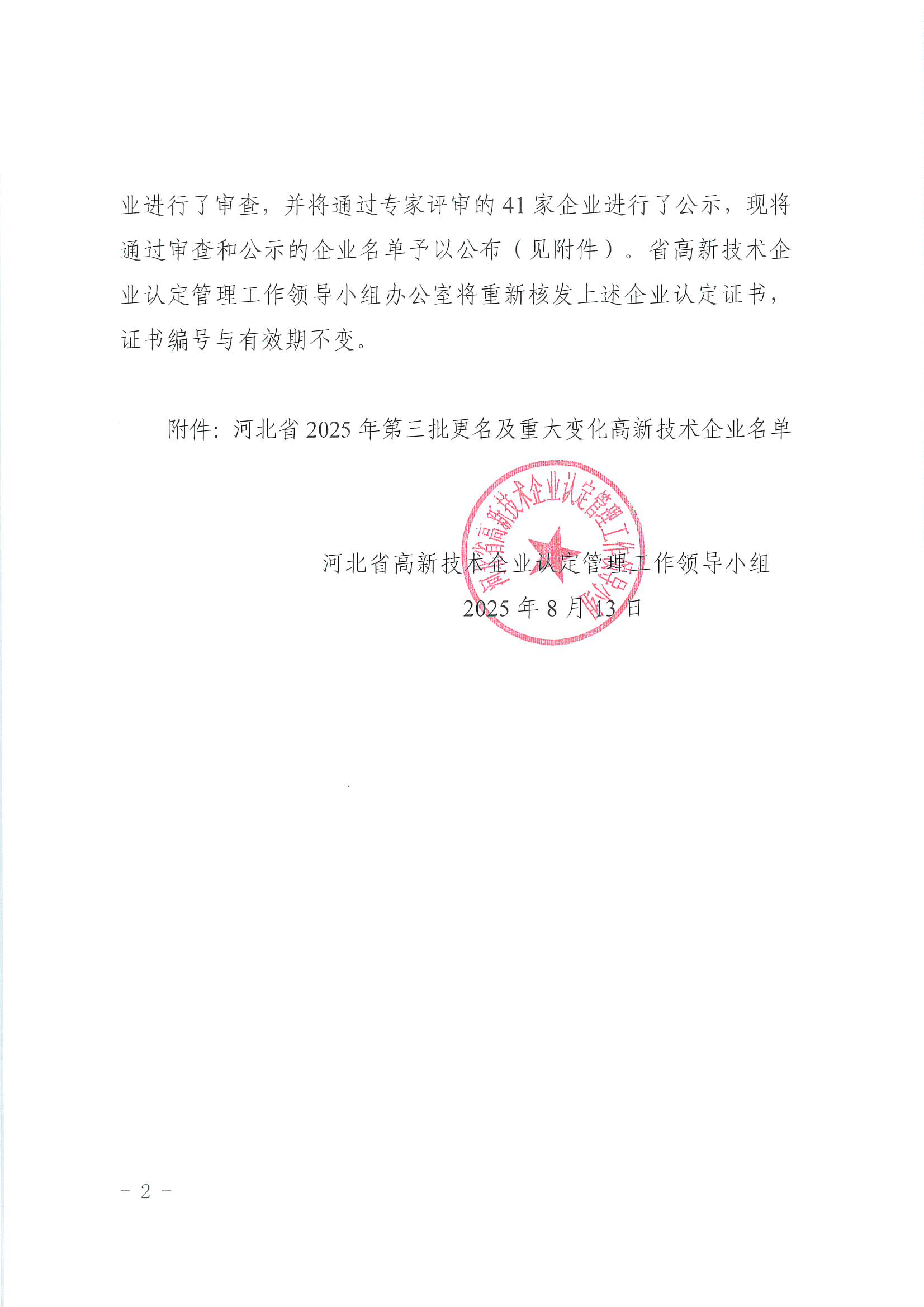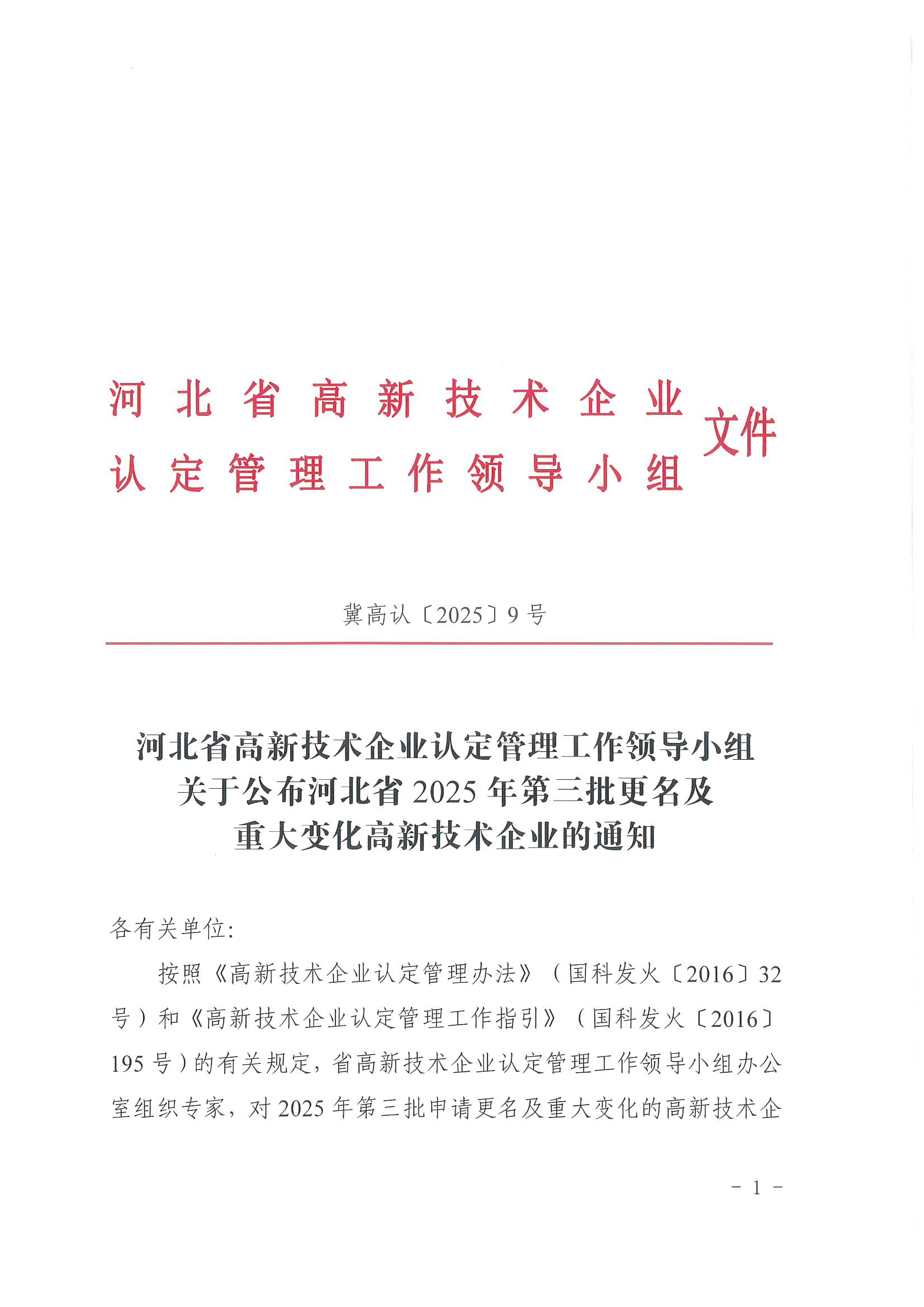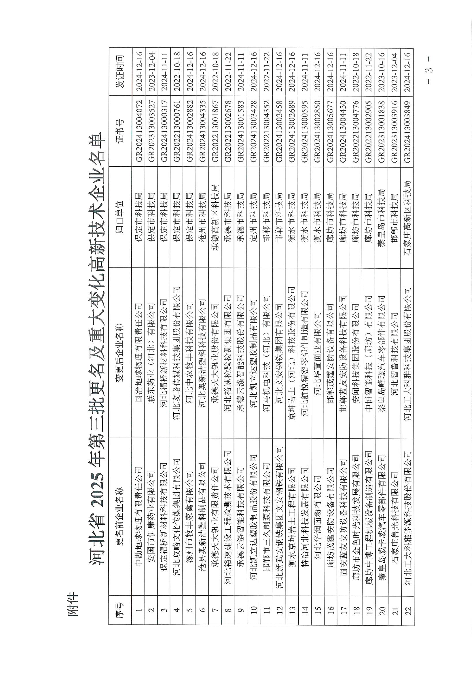 關于公布河北省2025年第三批更名及重大變化高新技術企業的通知